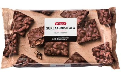 Pirkka suklaa-riisipala on maitosuklaalla päällystetty riisikeksi. Se on suussasulavan suklainen herkkupala, joka sopii kahvi ja teen kanssa tai sellaisenaan nautittavaksi.